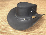 The Outback Survival Gear Buffalo Hats are extremely tough and durable and have a touch of "The West meets Outback" in style that is popular with both men and women. Â Made from 100% Water Buffalo, the leather has been split and oiled, giving it a rugged "rough-out" leather finish. Â The brim is rolled with a "mono-filament" memory cord so you can knock it around and it will bounce back to its original shape. Â One tough Hat!!