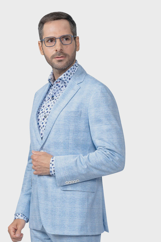 High-quality materials make this sports coat by 7 Downie Street so comfortable. The Nantucket Light Blue Plaid Stretch Blazer features a generous amount of stretch, allowing for unrestricted movement throughout your daily activities, ensuring you look sharp whether you're at a business meeting, a casual dinner, or a weekend brunch.