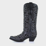 Women's Black Cowboy Boots with Crystals Inlay and Studs Corral A3752