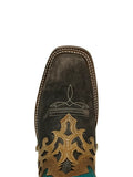This gorgeous style has a turquoise 11-inch shaft decorated with a beautiful stitch pattern and tan overlay on the brown color instep.