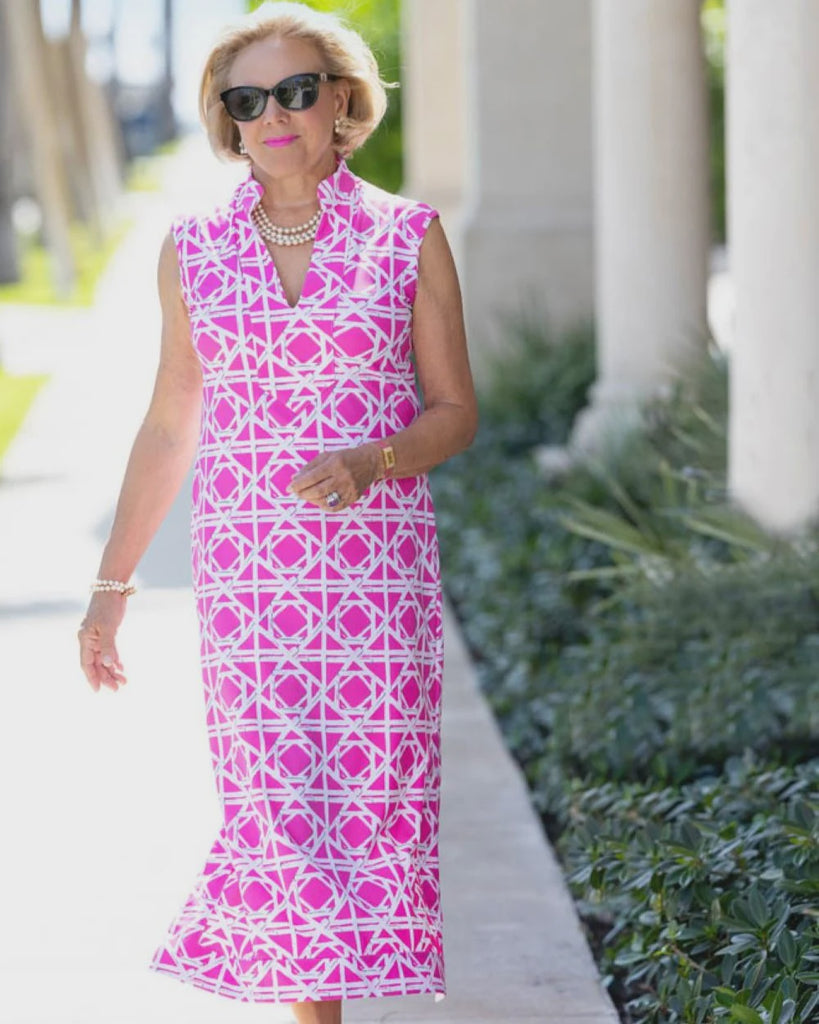 Kristen Maxi is the ultimate in effortless dressing. For work or play, you'll feel chic and pulled together in this classic tunic dress. Sleeveless with a mandarin collar and a relaxed easy fit through the waist and hips.
