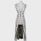 Maxi Long Sleeveless Leaf Pattern Leather Vest