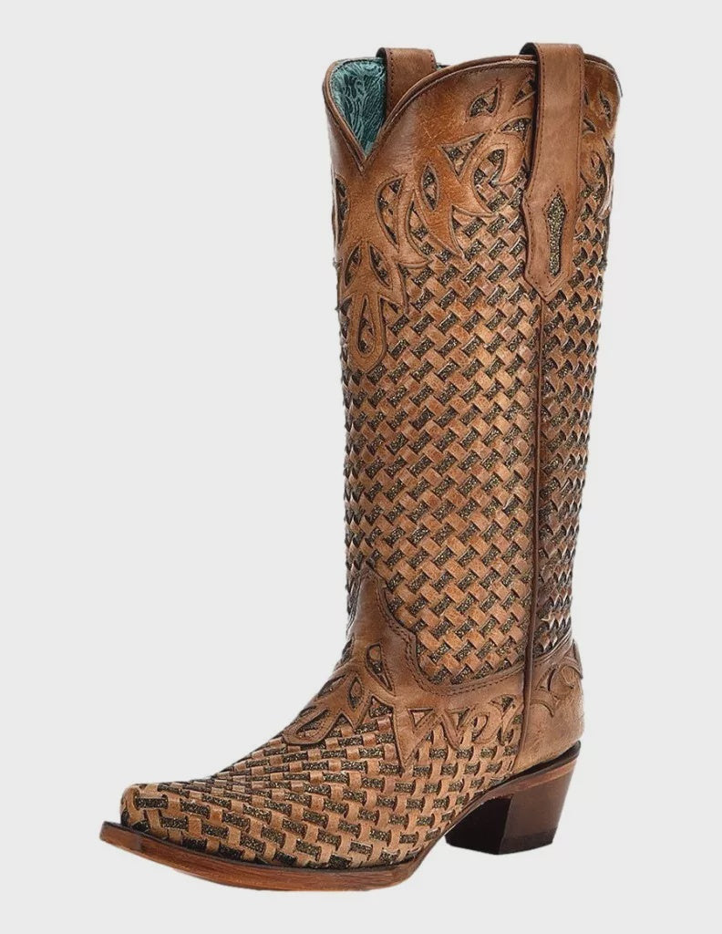 Corral Cowboy Boots A4506 Women's Leahter Woven Sand Glitter Woven Cowgirl Boots SS24