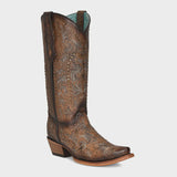 Corral Womens Boots C3972 Maple Embroidery with Studs Brown Tall Cowboy Boots