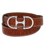 Lilo Bilbao Grande Bit 1.5" Leather Belt Brown Croc with Gold