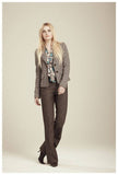 From fashion designer Christian Francis Roth. Sure to be a wardrobe staple, the Taylor Trouser is a classic women's pant in brown tweed knit with higher rise waist and wide leg. Button and zipper front closure with deep front pockets and faux back pocket flap detail. Seat is lined.