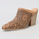 These American Darling women's mules slides are hand tooled. The painted Leather is vegetable tanned Cowhide Leather with nature-inspired engravings.