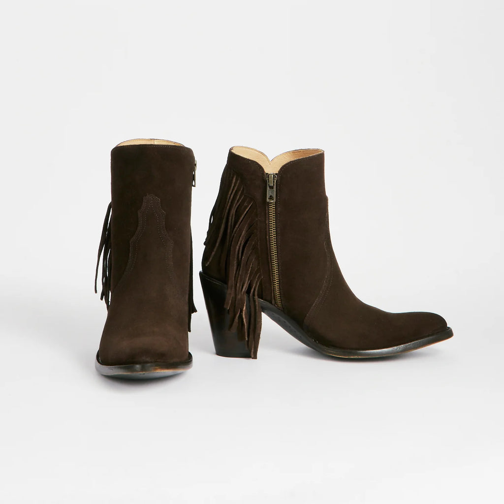 Lucchese Women's Fringe M6083 Maypop Western Suede Shoe in Choco brown