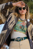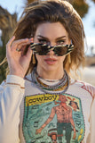 Well, y’all know there’s no real answer to that, but we sure had a good time concepting what a cowboy starter kit might look like. This fun graphic tee has everything you need – from your hat to your holster to your handlebar mustache! It’s embellished with embroidery and elevated by accented shoulder panels and contrast stitching.