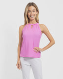 A spring and summer favorite, this sleeveless modified halter top features flirty keyholes at the front and back neckline. Pair with your favorite short for day and a skinny pant for the evening.