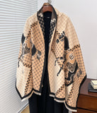 Equestrian Wrap Tan / Black Giddy Up Reversible Scarf 380E 1627TA SS25