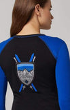 Show some sleeve. The Skye crew features bold color blocking, making it equal parts sporty and classic. Made for the slopes, this long sleeve is finished with a classic ski emblem on the back.