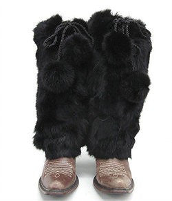 Mitchie's Matchings Rabbit Fur Bootcovers with poms in black.