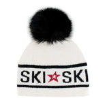 Mitchie's White/Black Knit "SKI" Hat w/Crystals & Black Fox Pom HTAN76 FW25