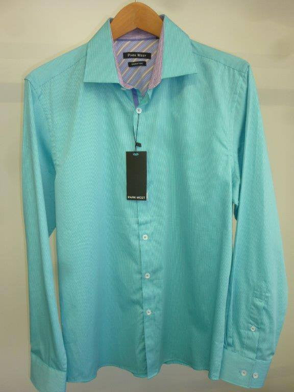 Park West 5536 Men's Teal Norton Mini Stripe Dress Shirt